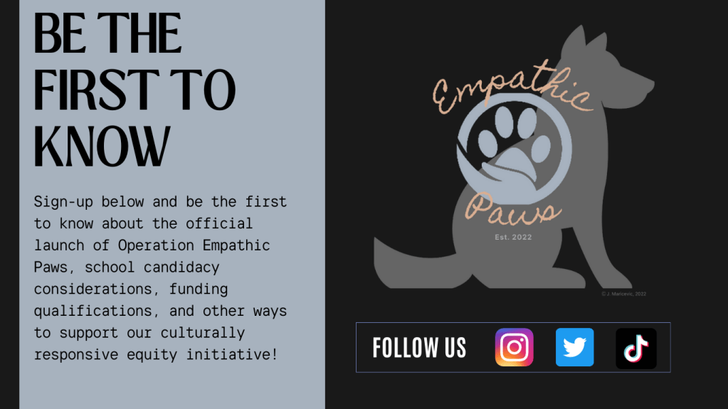 Operation Empathic Paws Be the first to know about the launch of O.E.P. Email Address Submit Share this: Click to share on X (Opens in new window) X Click to share on Facebook (Opens in new window) Facebook Like Loading...